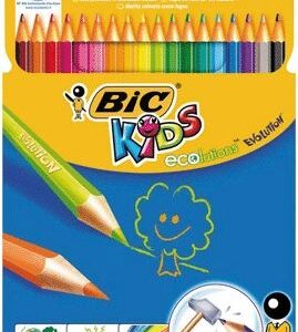Étui carton recyclé de 18 crayons de couleurs Évolution 17,5 cm couleur assorties. Crayons de couleurs en résine de synthèse sans bois, pas d”écharde en cas de bris, mine ultra résistante aux chocs, résiste aux mordillages.