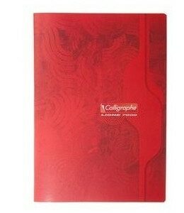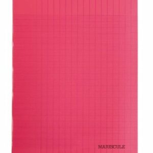 Piqûre 32 pages 17×22 cm, seyès 90g. Couverture en polypropylène: ROUGE.
