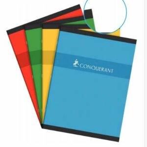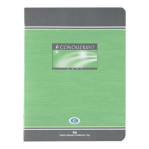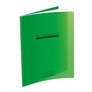 Piqûre 48 pages 17×22 cm, seyès 90g. Couverture en polypropylène: VERT.