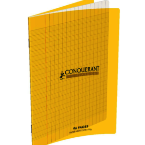 Piqûre 96 pages 17×22 cm, seyès 90g. Couverture polypropylène: JAUNE.