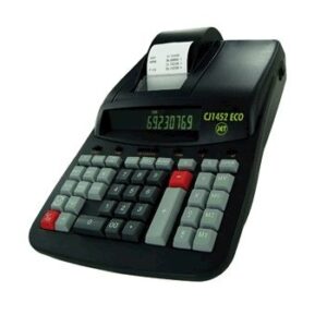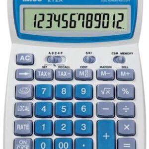 Machine à calculer professionnelle de bureau Ibico 212X. Ecran inclinable, 12 chiffres LCD. Ses atouts : – Fonction prix d”achat/prix de vente/marge – Taxes automatiques +/- – Conversion de devises – Mémoire – Pourcentage – Racine carrée – Correction du dernier chiffre – Arrondi commercial – Double Zéro – Arrêt automatique – Clavier type ordinateur pour une frappe rapide. – Sélection décimale : A 0 2 4 F. – Alimentation solaire et pile fournie. Dimensions : 190 x 140 x 32 mm. Poids : 200 grammes.