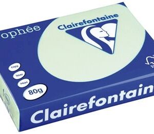 Ramette de 500 feuilles de papier 80g de format A4 vert Menthe TROPHEE CLAIREFONTAINE. Gr�ce � son excellente opacit�, les impressions recto verso sont parfaites, le rendu fid�le des couleurs est assur�. Sa grande tenue permet un passage impeccable en machine. Son emballage refermable et transparent permet de v�rifier la couleur et le niveau de papier restant dans la ramette. TROPHEE vous offre une qualit� d”impression irr�prochable en copie, jet d”encre ou laser. Sa structure homog�ne garantit un passage en copieur sans bourrage.SKU: 123762