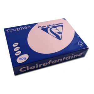 Ramette de 500 feuilles de papier 80g de format A4 saumon TROPHEE CLAIREFONTAINE. LLarge gamme en teintes pastel. Grâce à son excellente opacité, les impressions recto verso sont parfaites, le rendu fidèle des couleurs est assuré. Sa grande tenue permet un passage impeccable en machine. Son emballage refermable et transparent permet de vérifier la couleur et le niveau de papier restant dans la ramette. TROPHEE vous offre une qualité d”impression irréprochable en copie, jet d”encre ou laser. Sa structure homogène garantit un passage en copieur sans bourrage.