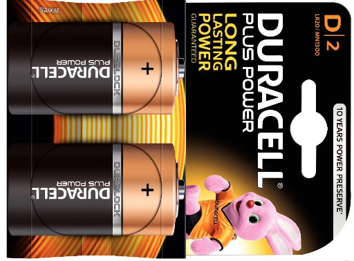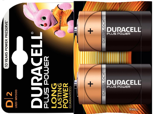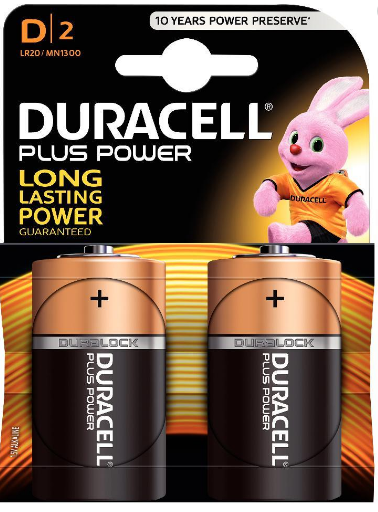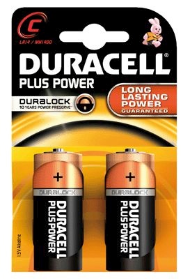 Blister de 2 piles 1.5 volts alcaline PLUS à la marque Duracell LR14 E93 C.
