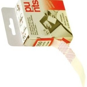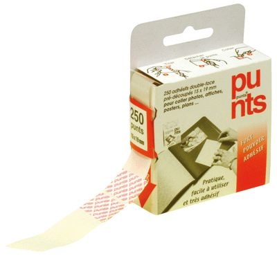 Boîte de 250 pastilles adhésives double-face pré-découpées PUNTS. Dimensions : 15 x 19 mm. Pour coller photos, affiches, posters, plans. Fort pouvoir adhésif. Pratique et facile à utiliser : tirer, détacher la pastille et coller.