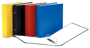 Classeur en carton épais recouvert de polypropylène, intérieur papier.