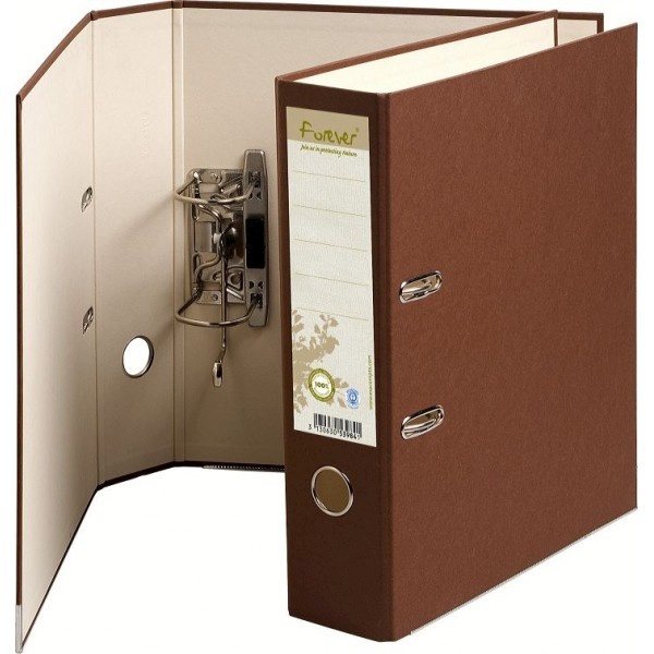 Classeur à levier pour format A4 (21×29,7cm). Dos 80 mm. Blanc. En carton (ép. 2 mm) recouvert de polypropylène. Intérieur papier blanc. Grand porte-étiquette + étiquette. Œillet de préhension et griffe de blocage. Coins métalliques. Format extérieur 29×32 cm pour format A4 (21×29,7 cm) à classer.