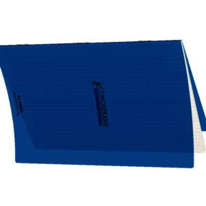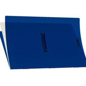 Piqûre 96 pages 24×32 cm, seyès 90g. Couverture polypropylène: BLEU.
