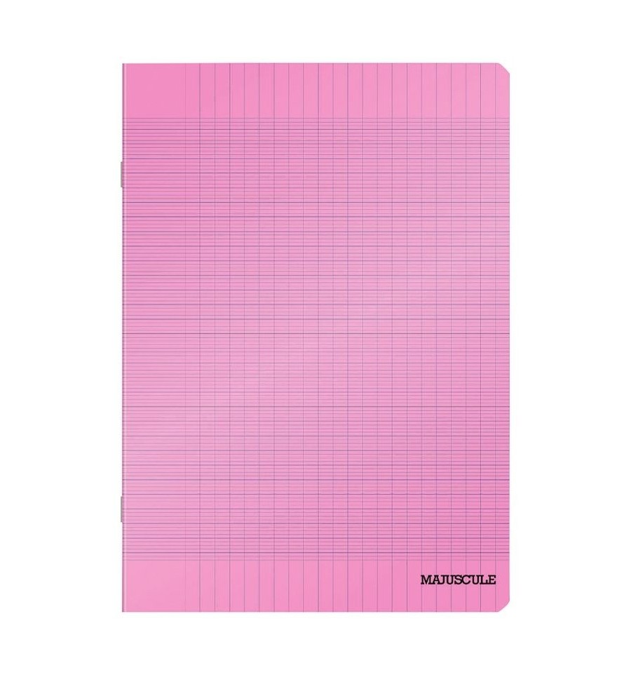 Piqûre 96 pages couverture polypropylène format 24×32 cm seyès coloris rose.