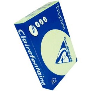 Paquet de 250 feuilles de papier 160g de format A4 vert golf TROPHEE CLAIREFONTAINE. Gr�ce � son excellente opacit�, les impressions recto verso sont parfaites, le rendu fid�le des couleurs est assur�. Sa grande tenue permet un passage impeccable en machine. Son emballage refermable et transparent permet de v�rifier la couleur et le niveau de papier restant dans la ramette. TROPHEE vous offre une qualit� d”impression irr�prochable en copie, jet d”encre ou laser. Sa structure homog�ne garantit un passage en copieur sans bourrage.