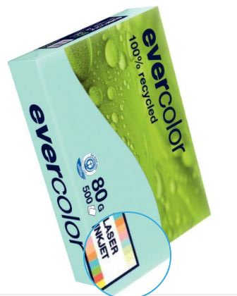 Ramette de 500 feuilles de papier recyclé 80g de format A4 bleu clair EVERCOLOR. La gamme EVERCOLOR est élaborée suivant un procédé écologique : énergie verte, peu de déchets générés, aucune utilisation de produits chlorés. Les papiers EVERCOLOR permettent de diversifier vos outils de présentation, offrant par ailleurs les caractéristiques idéales pour les photocopieurs, imprimantes laser et jet d”encre. 100% recyclé.