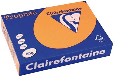 Ramette de 500 feuilles de papier 80g de format A4 clémentine TROPHEE CLAIREFONTAINE. Grâce à son excellente opacité, les impressions recto verso sont parfaites, le rendu fidèle des couleurs est assuré. Sa grande tenue permet un passage impeccable en machine. Son emballage refermable et transparent permet de vérifier la couleur et le niveau de papier restant dans la ramette. TROPHEE vous offre une qualité d”impression irréprochable en copie, jet d”encre ou laser. Sa structure homogène garantit un passage en copieur sans bourrage.