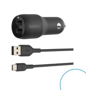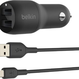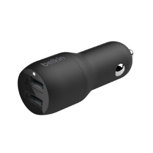 - Chargeur de voiture à deux ports USB-A de 24 W (12 W par port)