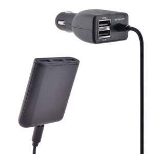 Rechargez vos différents appareils en voiture grâce au Family Car Charger signé Bluestork. Vous disposez de deux ports USB directement sur le chargeur pour vos smartphones et 3 ports USB sur le second élément pour brancher vos tablettes. De plus, un clip pour siège arrière est disponible pour un agencement des plus agréables.Caractéristiques principales :