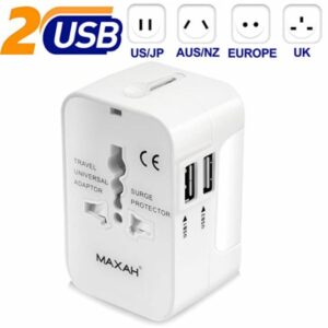 - 【MAXAH Adaptateur de voyage】 Avec 4 prises internationaux US / EU / UK / UA s’adapte à toutes les prises reliées pour plus de 150 pays et région, dont le Royaume-Uni, la France, l’Allemagne, l’Italie, l’Espagne, la Belgique, les États-Unis, la Chine (Hong Kong, Taiwan), Singapour, le Japon, la Thaïlande, les Philippines, Australie, la Malaisie, l’Indonésie, l’Inde, le Brésil, le Chili, Nouvelle-Zélande, Argentine, etc.