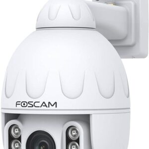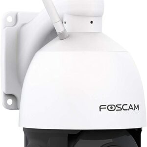 - Caméra IP Dôme Motorisée – Rotation 350° / Zoom optique x18 : La caméra dôme SD2X Foscam s’installe contre le mur grâce à sa potence intégrée, ce qui permet sa rotation à la fois horizontale (350°) et verticale (90°) couvrant quasiment 360°de la zone.