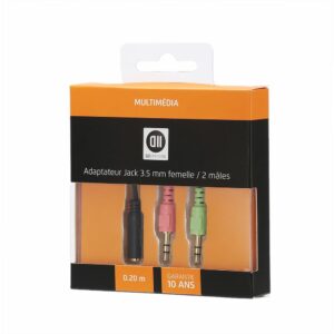 D2-ADAPTATEUR 1JK M/2JK F 3.5mm 0.20cm Utilisation avec casques micro