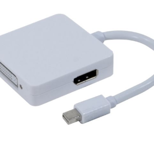 Convertisseur miniDisplayPort 1.1 vers DisplayPort ou DVI-D ou HDMI| |Ce convertisseur permet de brancher 3 types d’écrans (de façon non-simultanée) sur une sortie graphique. | |Résolution 1080p|Audio pris en charge sur le HDMI et le DP uniquement (si matériels périphériques compatibles)| |Longueur du câble (hors connecteurs) 10cm | | |ATTENTION : une incompatiblité peut survenir avec des moniteurs de marque DELL. |