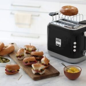 - CONFORT : remonter les tranches facilement sans arrêter le toaster et la fonction baguette pour dorer un seul coté vos pains et bagels