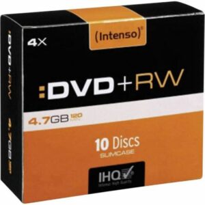 DVD+RW Intenso 4,7Go 4x 10boîtiers – Capacité d’enregistrement (durée) : 120 minCapacité de stockage : 4.7 GoConditionnement : 10 pc(s)Emballage : slimcaseSpécificités du disque vierge : réinscriptibleType de disque vierge (catégorisation) : DVD+RWVitesse d’écriture (max.) : 4 x…DVD+RW Intenso 4,7Go 4x 10boîtiers – Capacité d’enregistrement (durée) : 120 minCapacité de stockage : 4.7 GoConditionnement : 10 pc(s)Emballage : slimcaseSpécificités du disque vierge : réinscriptibleType de disque vierge (catégorisation) : DVD+RWVitesse d’écriture (max.) : 4 x…