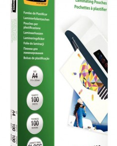 Boîte de 100 pochettes de plastification A4 100 microns. Préservez, protégez et mettez vos documents originaux en valeur. Utilisation simplifiée et garantie sans bourrage. Les flèches directionnelles vous guident pour insérer la pochette dans le bon sens et disparaissent une fois le document plastifié pour des résultats supérieurs