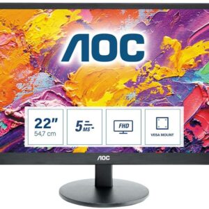 - Contenu de la livraison : Écran grand public AOC E2270SWHN 54,6 cm (21,5 pouces) noir, câble d’alimentation, câble VGA, câble HDMI, CD d’installation,