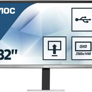 - Contenu de la livraison : Écran PC AOC Q3277PQU 81, 3 cm (32 pouces) noir, câble d’alimentation, câble VGA, câble DVI, câble HDMI, câble DisplayPort, câble audio, CD d’installation, fiche de garantie