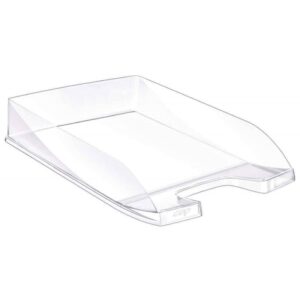 Corbeille à courrier Ecoline 100 Cristal. Classic et contemporainPrise en main en U, large et profonde, facilite l”accès au contenu et le passage de la main dans la corbeille du dessous.Accepte jusqu”au format 24 x 32 cmSuperposition verticale ou en escalierDimensions : 351 x 255 H 65 mmPolystyrène antichoc 100 % recyclable
