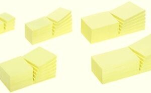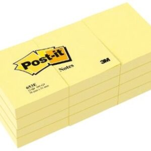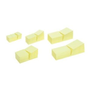 Lot de 12 blocs notes de 100 feuilles post-it, 38 x 51 mm, coloris jaune. Adhésif renforcé et repositionnable. Super collant, adhère mieux, plus longtemps et sur tous types de surfaces, mêmes verticales (murs, portes, ordinateurs, téléphones, pochettes plastiques…).SKU: 484119 -
