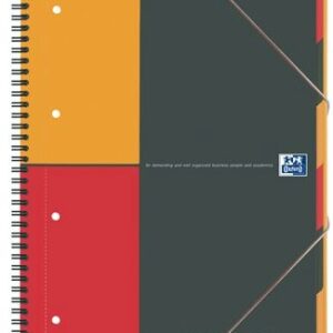 ORGANISER BOOK, cahier trieur à reliure intégrale 180 pages, feuilles A4 perforées détachables 80g, quadrillées 5×5, format 24.5×31 cm, avec 3 rabats et un trieur 6 touches . Fermeture par élastique.