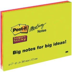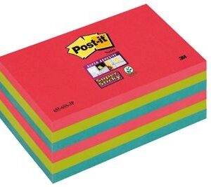 Paquet de 6 blocs de 90 feuilles Super Sticky post-it, 76 x 127 mm, couleurs Marrakech : vert, rouge, bleu, violet et jaune.