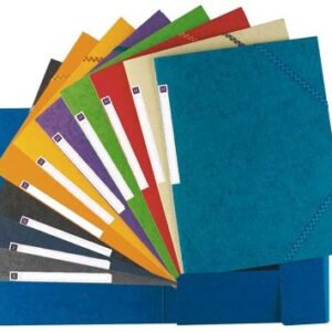 Paquet de 10 chemises 3 rabats à élastiques en carte lustrée 5/10ème 400g format 24×32 cm coloris assortis. Bleu foncé, vert foncé, tilleul, orange, rouge, violine, jaune, gris, turquoise, fuchsia. Avec étiquette de dos. Dos 2,5 cm.SKU: 638602 -