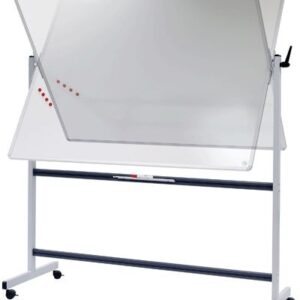 - Tableau blanc émaillé rotatif 90×120 cm Deux fois plus de texte sur une surface limitée! Lorsque le tableau est saturé d’un coté, il suffit de le faire basculer pour continuer au verso. Un bouton permet de faire basculer le tableau de 360° sur l’axe horizontal et peut se fixer sous tous les angles. Le support est muni d’un auget sur toute la longueur. Equipé de 4 roulettes, dont 2 à freins.