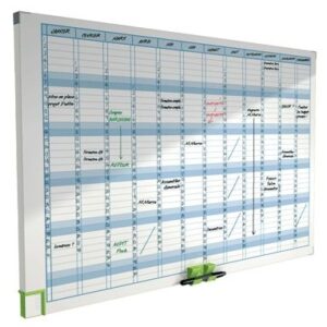 Surface sérigraphiée pour marqueur effaçable à sec. Pas de marquage des mois et années, uniquement 12 colonnes pour les mois + 1 colonne index,31 lignes. pour les jours.