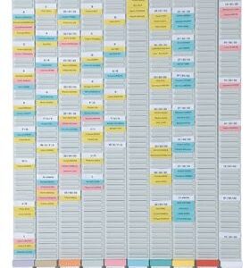 • ce kit pour planning à fiches T contient tout le nécessaire pour créer un planning de projet grande capacité, durable et polyvalent, qui trouvera de nombreux usages