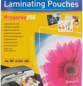 Boîte de 100 pochettes de plastification A4 250 microns. Préservez, protégez et mettez vos documents originaux en valeur. Utilisation simplifiée et garantie sans bourrage. Les flèches directionnelles vous guident pour insérer la pochette dans le bon sens et disparaissent une fois le document plastifié pour des résultats supérieurs.SKU: 151555 -