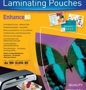 Boîte de 100 pochettes de plastification A4 80 microns. Préservez, protégez et mettez vos documents originaux en valeur. Utilisation simplifiée et garantie sans bourrage. Les flèches directionnelles vous guident pour insérer la pochette dans le bon sens et disparaissent une fois le document plastifié pour des résultats supérieurs.
