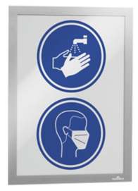 Pochette adhésive transparente antireflet DURAFRAME® format A4 avec cadre magnétique de couleur.