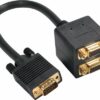 Ce câble permet l’affichage sur 2 écrans à partir d’une sortie carte graphique. Avec ce produit vous obtiendrez la même image sur 2 écrans Le côté carte video est équipé d’un connecteur HD15 (VGA) mâle Le côté écran est équipé de 2 connecteurs HD15 (VGA) femelle Longueur 0.30 m