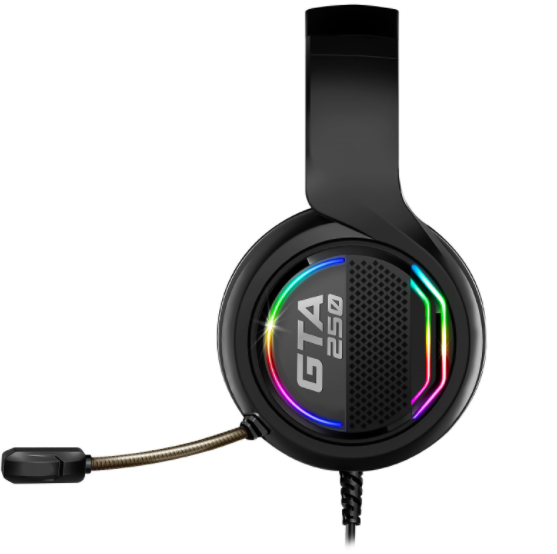 Le Casque Gamer GTA 250 est compatible : PS4 et PC, rétro-éclairage RGB rainbow des écouteurs ; Les haut-parleurs de 40 mm produisent un son clair et des basses puissantes, Arceau rembourré réglable en hauteur et coussinets en similicuir confortables, Microphone omnidirectionnel fléxible pour des conversations claires et précises avec vos coéquipiers. . Télécommande filaire multifonctions : Volume + / Volume – / Mute Micro / Mute Son.
