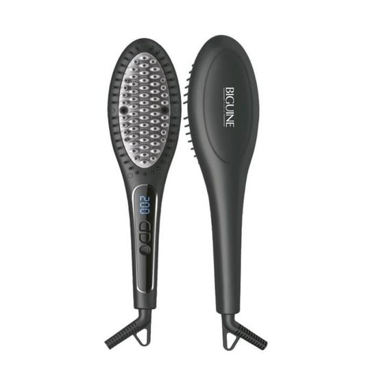 BIGUINE Brosse lissante chauffante – Puissance 53w – Écran LED – Température 140-220° – Picots céramique – Fonction Ionic – Arrêt automatique – Double booster d’ions – Cordon pro 1,8m