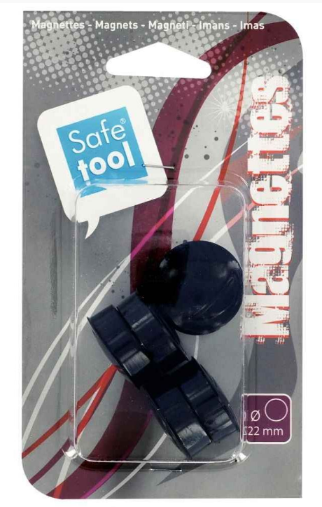 Blister de 6 punaises magnétiques, diamètre 22 mm. Coloris Noir