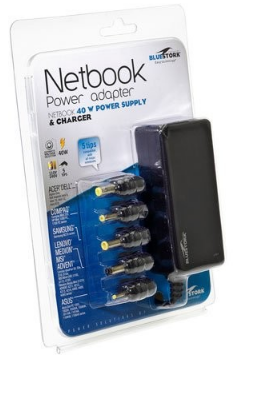 L’alimentation Bluestork PW-NB40 fournit jusqu’à 45 Watts de puissance et fonctionne avec la plupart des netbooks actuels grâce à ses connecteurs interchangeables.