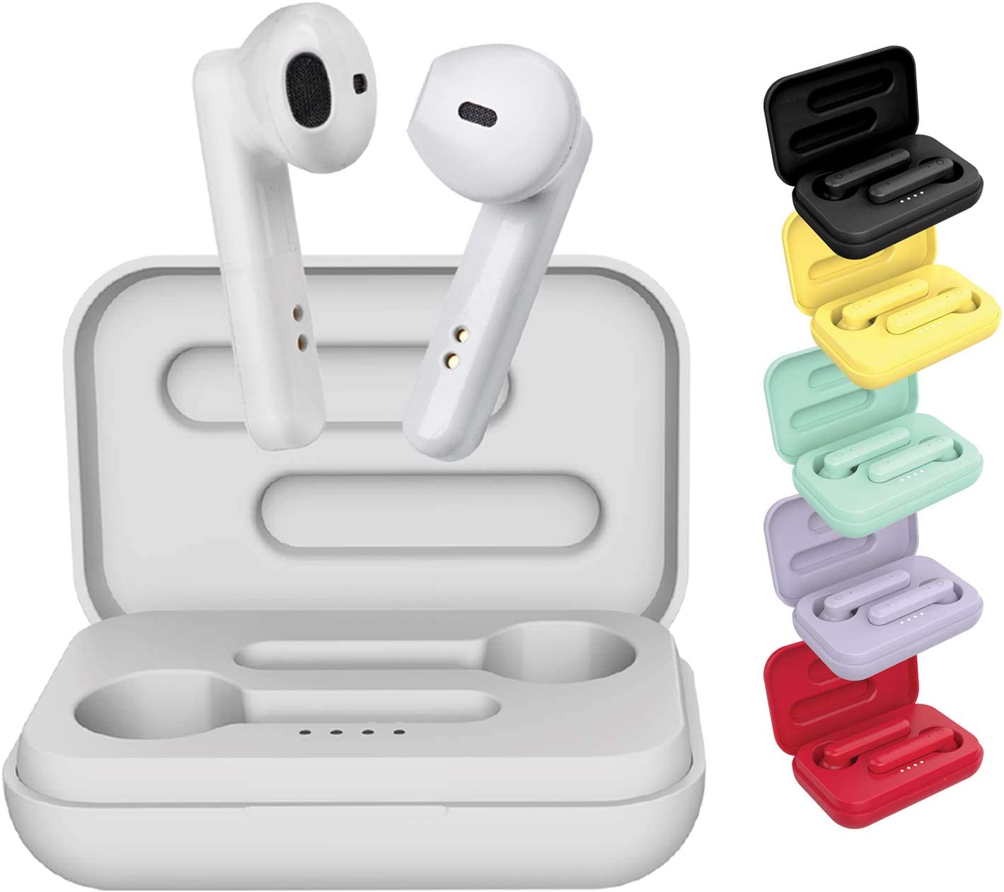 • SON STÉRÉO HAUTE QUALITÉ AUDIO. Profitez pleinement de votre musique avec un son précis et haute fidélité. La puce audio utilisée pour ces écouteurs garantit une qualité audio supérieure et une parfaite clarté du son. La technologie Bluetooth 5.0 avec décodeur haute résolution intégré permet une transmission audio en temps réel et sans retard. Les basses ont été particulièrement renforcées pour une expérience audio améliorée. Il y a un microphone sur chaque écouteur pour passer des appels.. included_components: Écouteurs + Etui + Dédoubleur Jack