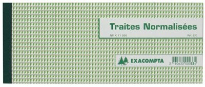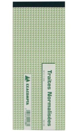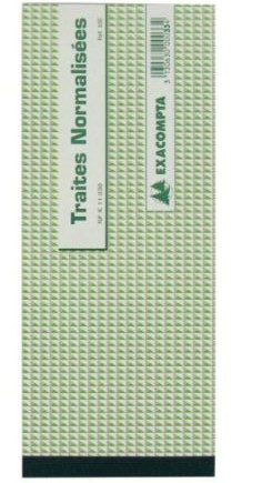 Carnet de 50 traites normalisées, format 10 x 21 cm.
