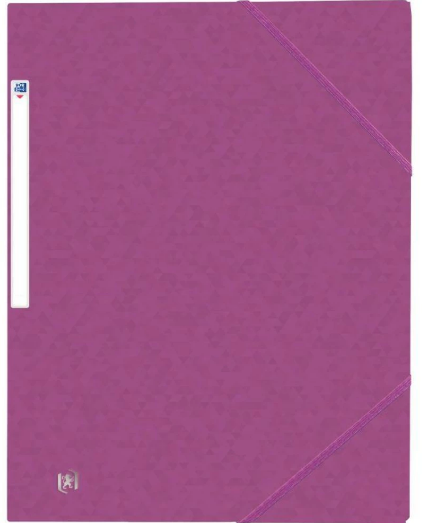 Chemise 3 rabats élastiques TOP FILE+ en carte lustrée 4/10e 390g, prune. Format 24 x 32 cm pour format A4. Avec étiquette de dos. Dos 2 cm. Chemises résistantes, pour une utilisation au quotidien. Fermeture par élastiques. Capacité 200 feuilles.
