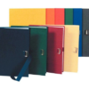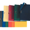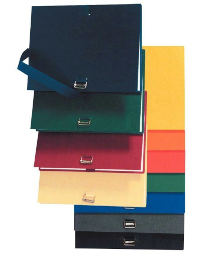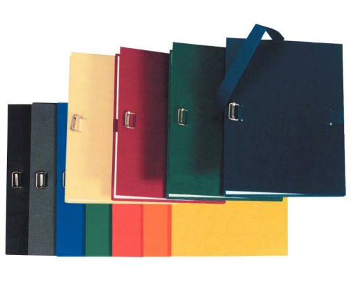 Paquet de 5 chemises à dos extensible qualité toilée, coloris assortis. Format 24 x 32 cm. Plat et dos recouverts de papier grainé, sangle assortie au coloris du plat, boucle métal. Extensible jusqu”à 13 cm, sans rabat. Capacité 1000 feuilles. 5 coloris assortis : rouge, jaune, bleu, vert et mastic.