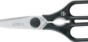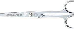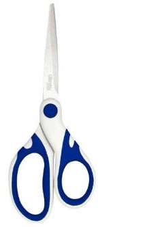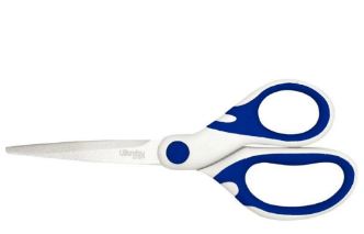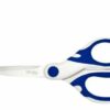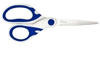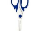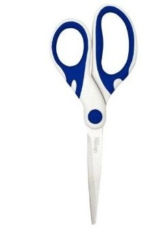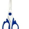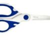 Ciseaux CANDY 21cm blanc/bleu. Lames en acier inoxydable, bouts pointus, anneaux asymétriques bi-matière.