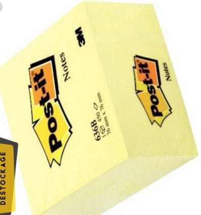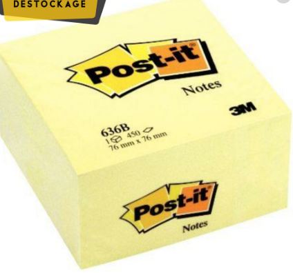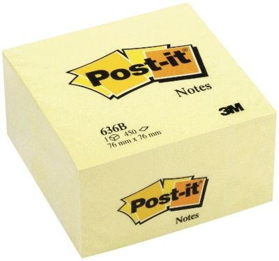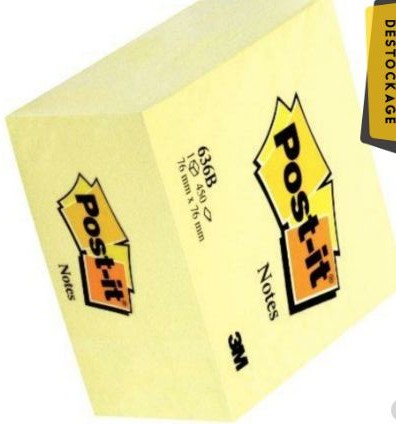Cube de 450 feuilles de notes post-it repositionnable 76 x 76 mm jaune. Près du téléphone ou au coin du bureau. Pour les messages urgents.