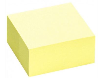 Bloc cube de 400 feuilles de notes repositionnables 75 x 75 mm jaune pastel.